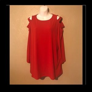Susan Graver red top size L cold shoulders
