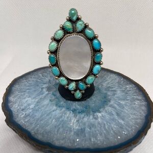 🛑SOLD🛑 New Sterling Silver stamped 925, Turquoise and Mother of Pearl Ring