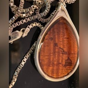 Hawaiian Island .925 pendant/ Koa wood pendant/ box chain; from Hawaii