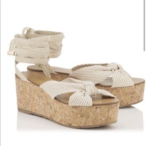 Jimmy Choo White Gold Norah Wedge Ankle Wrap Sandal EU 38