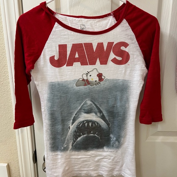I love Hello Kitty and had to have this cute and funny shirt! I am also glad I found this top just in time for the 50th anniversary of JAWS. It fits well and is soft. Thanks.