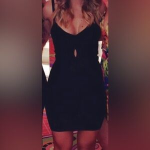 By The Way Black Mini Dress with Gemstone Straps | Size S