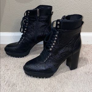Enzo Angiolini Black Faux Leather/Suede Booties