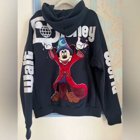 The sweatshirt looks great! We searched everywhere in Disney for his size and couldn't find it anywhere. He's going to be so excited to open it on Christmas!