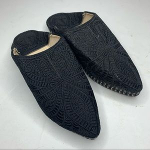 Moroccan Black Embroidered Leather Slippers Babouche Shoes NEW