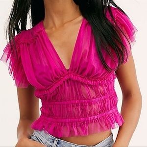 Free People Making Me Smile Pink Ruffle Top