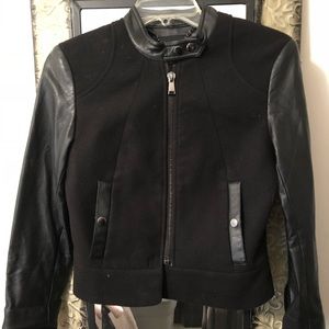 H&M faux leather sleeve bomber style jacket