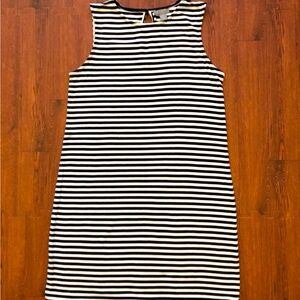 Navy and white striped mid-length dress