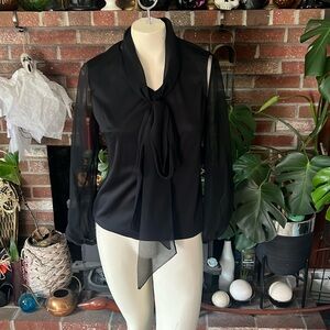 Vintage 60s/70s Black Shift Dress with Sheer Sleeves