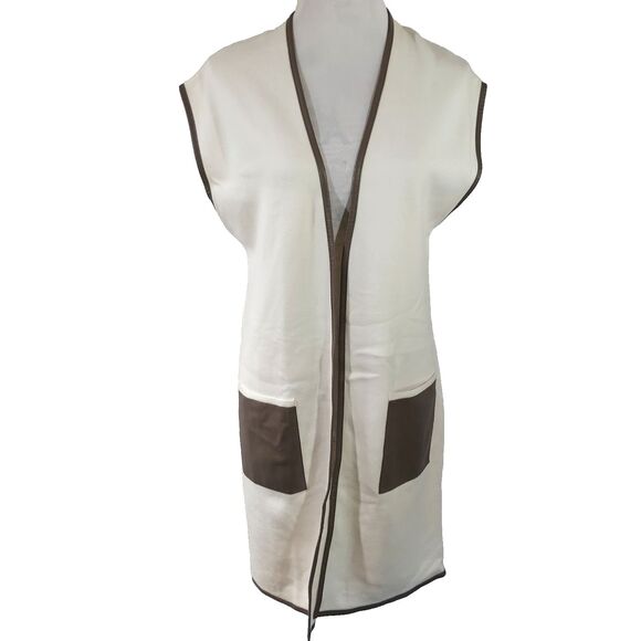 The color was advertised as ivory and brown faux, but there’s no brown in the material, the color is more like grayish color. Otherwise it’s a nice color. And it fits well..