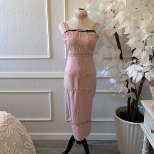 Ryley Mauve Choker Detail Lace Trim Midi Dress