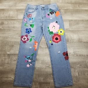 Vintage 1970s wrangler jeans, wide leg/flare. Red, white and blue striped trim