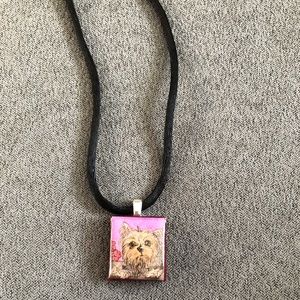 Silver hand painted Yorkie portrait necklace.