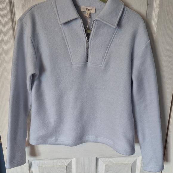 OMG! This is the most beautiful shade of VERY light blue and feels like wearing the softest blanket. The fit is perfect and it arrived so quickly and in pristine condition. What a find! Thank you 😊