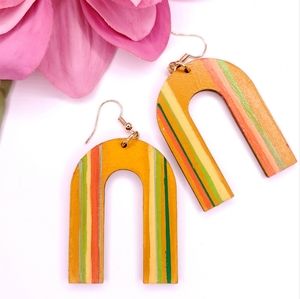 Striped Wooden Earrings, 2 inch arch,Handpainted mustard artisan,lightwe…