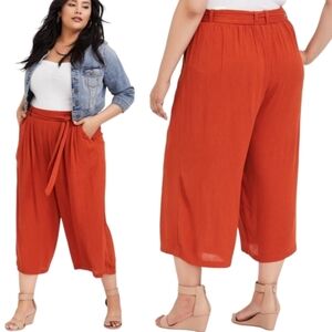 INDIGO REIN Linen Blend Wide Leg Cropped Pants Navy White Womens Size M Coastal
