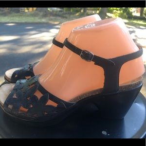 Dansko Black Floral Leather Wedge Sandals Size 37