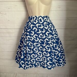 L.L. Bean Size 18 Blue & White Bird Print Fit n Flare Midi Skirt