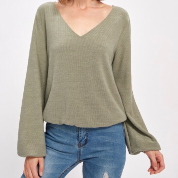 Boutique Tops - Bishop Sleeve Ribbed Top