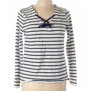 Nautica White & Navy Striped Front Tie Top