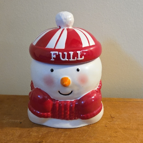 Perfect little cookie jar very cute will fit in great with my Christmas collections. Thank you for wrapping my cookie jar so well.