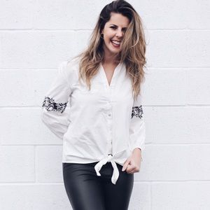 Lace Elbow Button Down Blouse