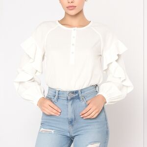 SPLENDID XS Ruffle Sleeve Poplin White Blouse Button Front Lightweight Stretch
