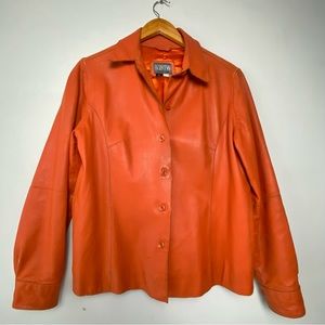 Sold‼️Vintage Orange Button Front Leather Shirt Jacket 70's