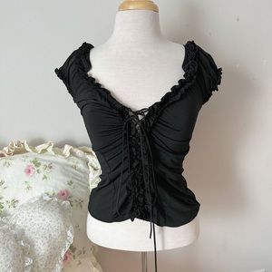 Corset style black top that can turn into a off the shoulder top y2k grunge goth