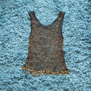 Black Yellow Beaded Swimsuit Cover Tank Top Sz S