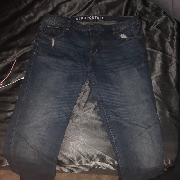 Excellent condition hard to find the super skinny aeropostale jeans I usually wear the 38/34 but I like this style with the "A" on the back pocket and like to cuff them so its a slightly bigger cuff than a 34 length-I like this style and being on the autism spectrum I like this style and try to find these jeans when I can they are perfect Thank you
