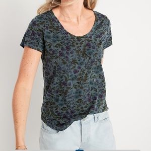 NWT Old Navy Dark Green Floral Scoop Neck Tee