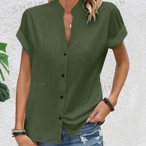SHEIN Olive Green Button Front Spaghetti Strap Romper