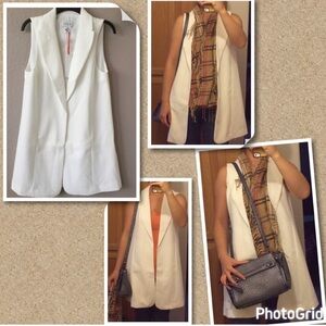 ELLE Small Sleeveless Blazer Jacket Duster Vest Collared Open Front Marshmallow