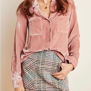 Anthropologie Maeve velvet button up top