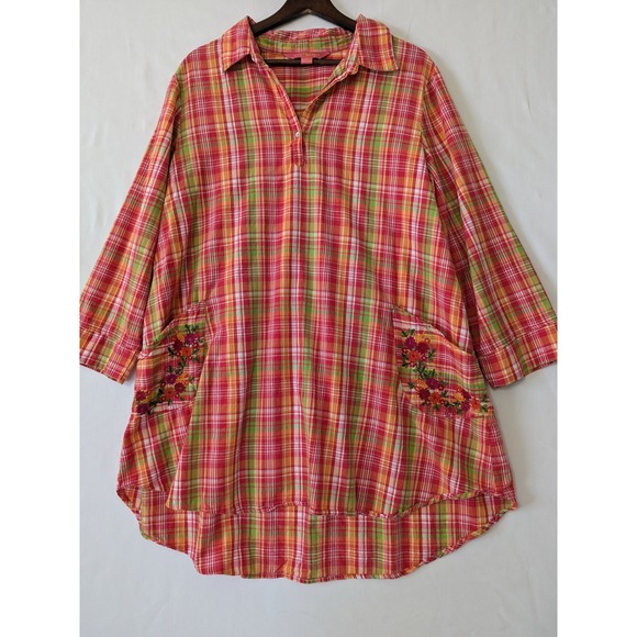 Love the pattern and vibrant colors, the pockets, the style, the fabric and the great condition of this lovely April Cornell top. Thanks, Elaine