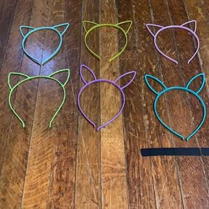 Headbands,plastic,1 isn’t plastic,4of them are cat ears 2 of them are bunny ears