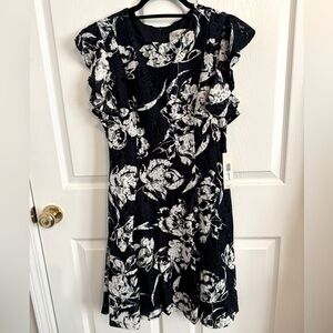Navy Floral Ruffle sleeve dress