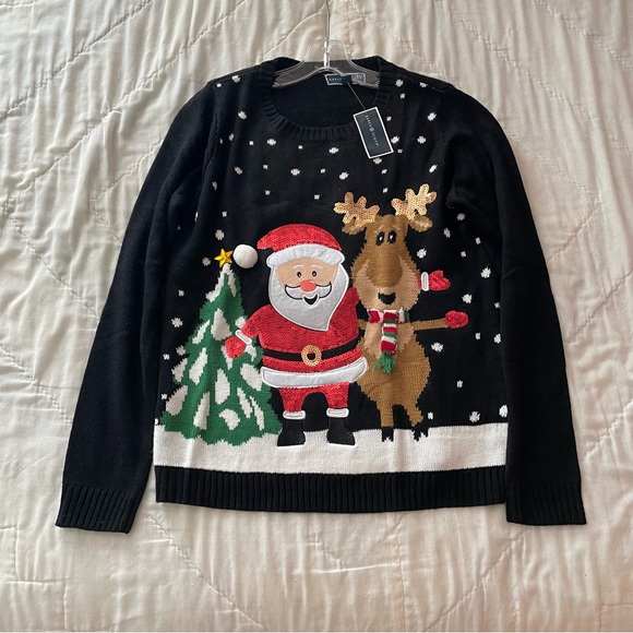 The sweater is just as described. It arrived in time for me to wear it to a party.