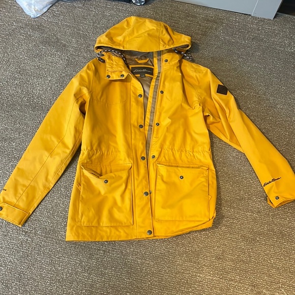 Absolutely perfect, gorgeous jacket that I've been eyeing up at Eddie Bauer for over a year, but wasn't ready to drop $125+ (on sale!) when I have another rain jacket. Seller made this deal well worth it 🙂