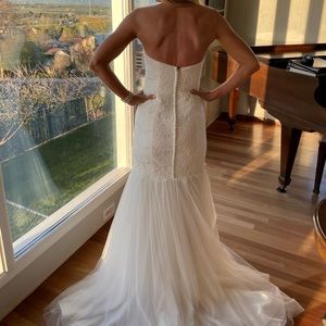 Formal off the shoulder dress with floral shirt and burgundy top.
