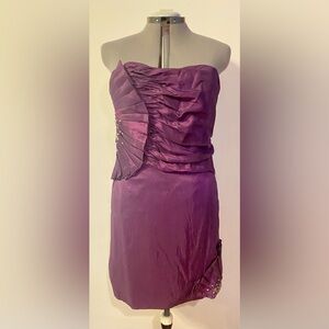 Strapless Dark Purple with beaded designs on the sides. Size 2XL.