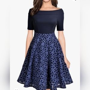 Miusol Royal Blue Boat Neck Flair Aline Floral Skirt Midi Dress sz XXL Fits S14