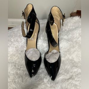 Black patent leather heels with ankle straps size 11