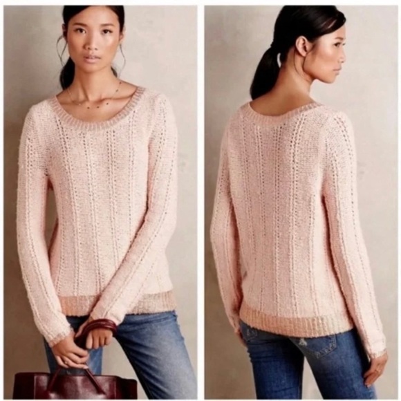 Anthropologie Sweaters - Anthro Moth Metallic Gold Wool Blend Rose Pink Chunky Open Knit Pullover Sweater
