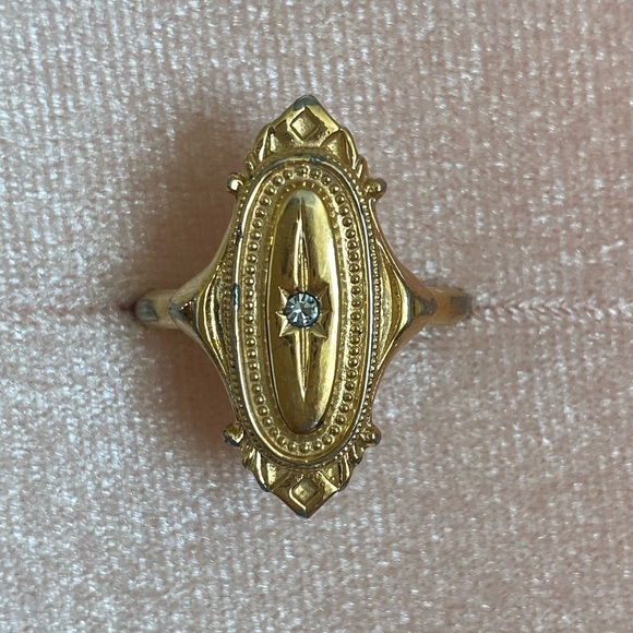 Beautiful ring at an amazing price! Gold tone is very near perfect, the stone in the middle is so clear and bright and even the auto sizer is in practically brand new condition! It came wrapped so so safely and got here quickly. Getting home from work to this was just the loveliest little surprise!