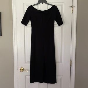 Short dress with high collar and short sleeves. Back hidden in-seam zip closure.