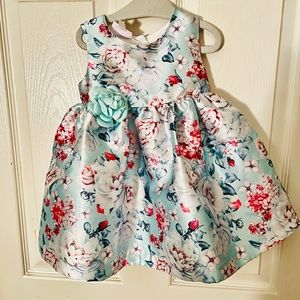 Pretty pink sweater dress with matching off white/ pink tights. Brand new