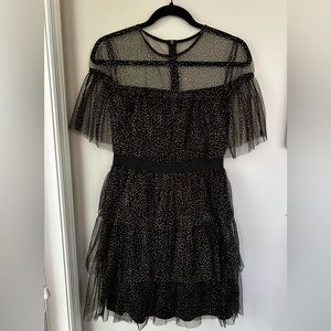 More to Come Mini Skirt Black and Silver Tinsel Pleated Mini Size Small