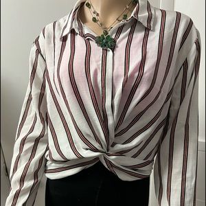 Buffalo David Bitton Women's White and Blue Striped Button-Down Shirt